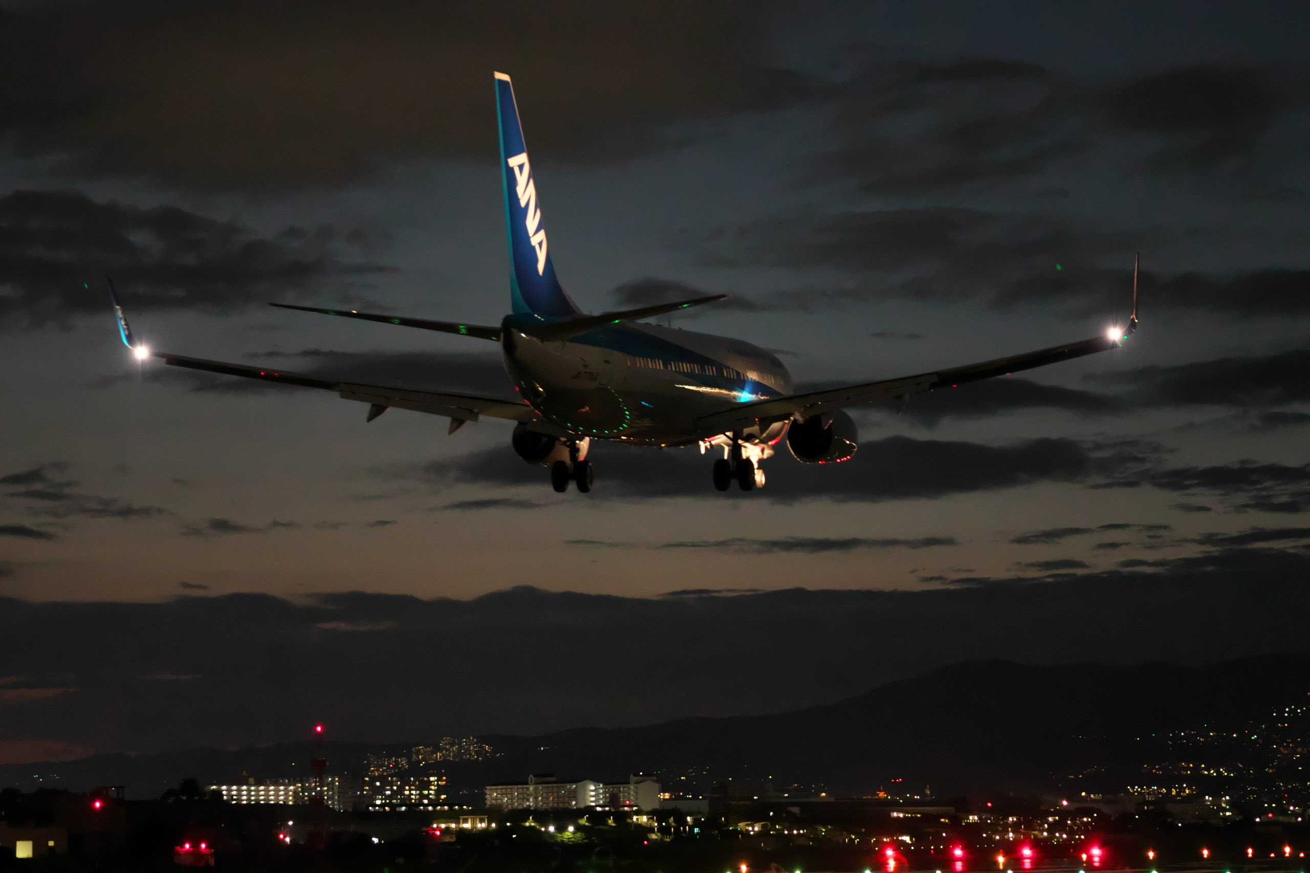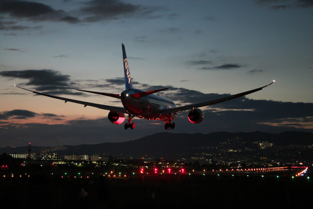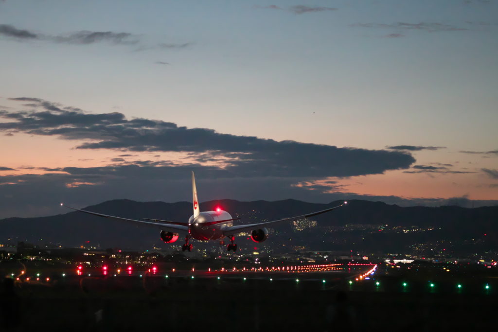 次々と飛行機が飛び立っては着陸する。ヘッドライトが手前から3機分くらい一度に見えることもあった。