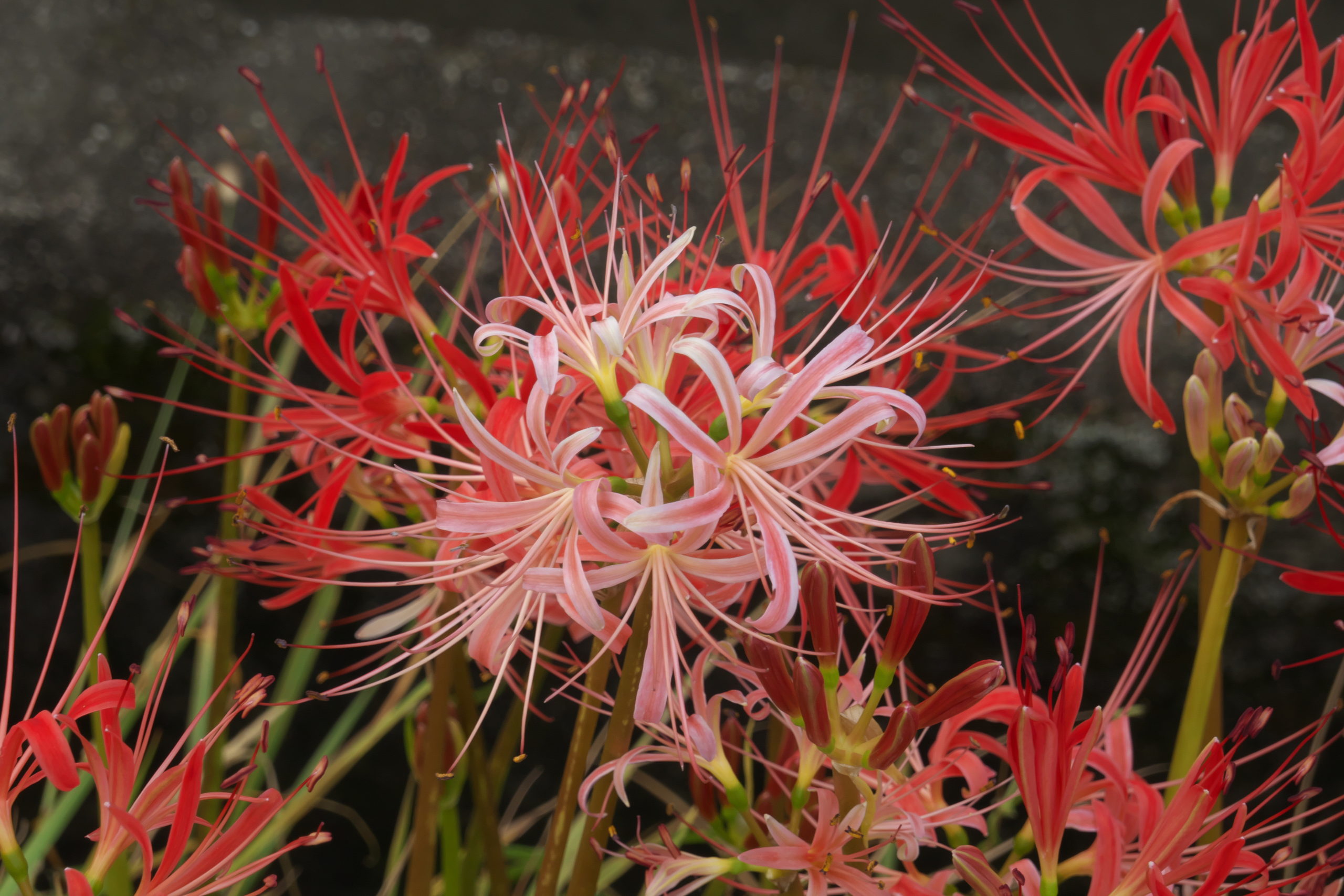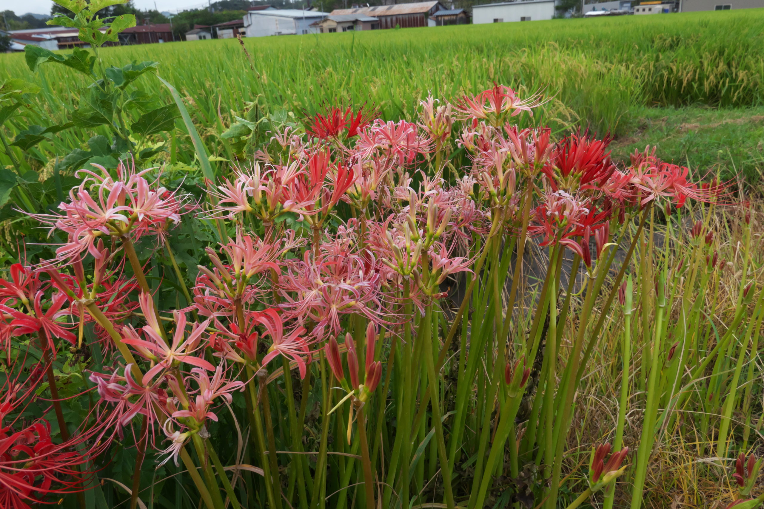 「練習のためになんでも撮ったらいいわ、ヒガンバナとか・・・」という話をしたら、「この前、それを子供たちが英語で言っていましたわ」というので、「へえー!!」ってびっくりして、英語調に「マンジュシャゲエイ~!とか言ってたん?」って返したら、「それです、それ!」というので、吹いてしまった。マンジュシャゲは曼殊沙華です。