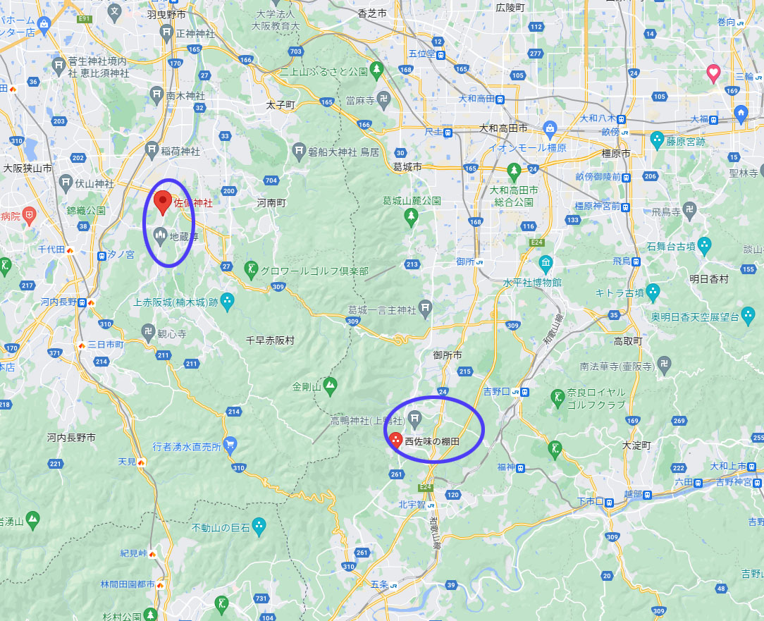 葛城・金剛の山を越えて近接する奈良県側の御所にも「佐味」の地名があり、この「佐備」と深い関係が想像できる。