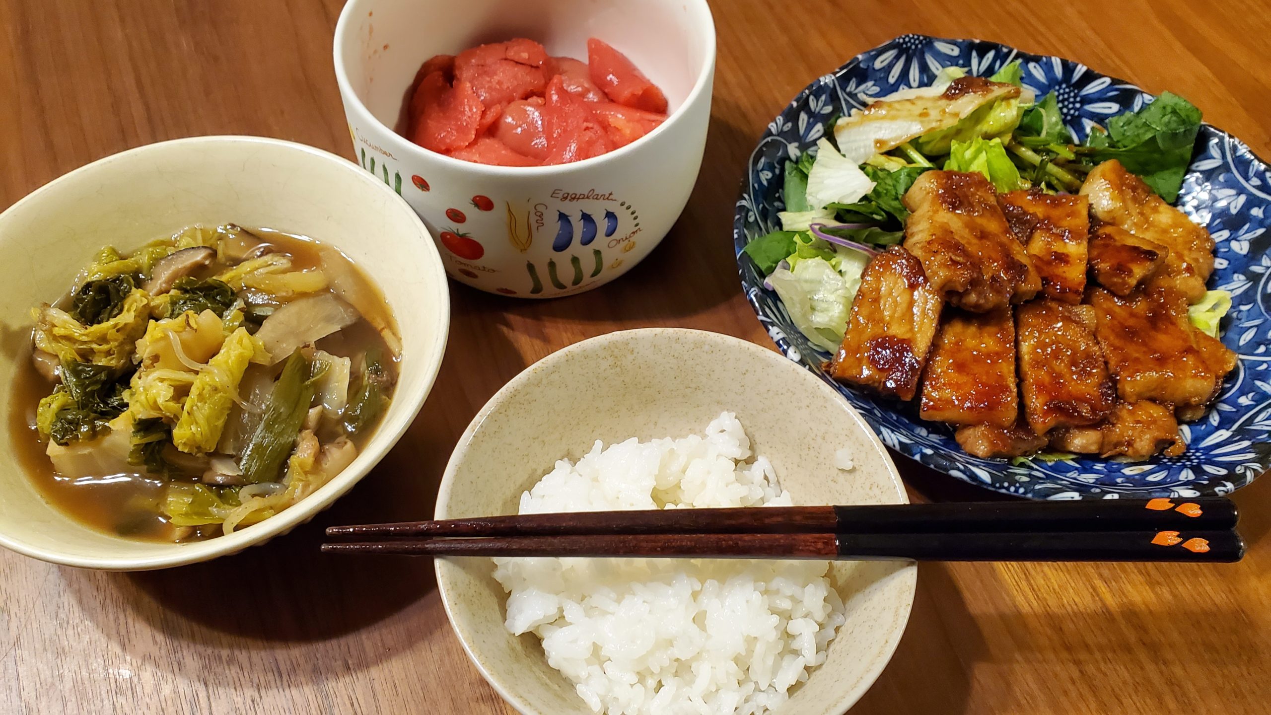 起きてから豚肉ステーキのしょうが焼きを作ってみたが、パリッと仕上げることが出来なかった。また、バターを入れすぎたが、何とかまとめることができた。