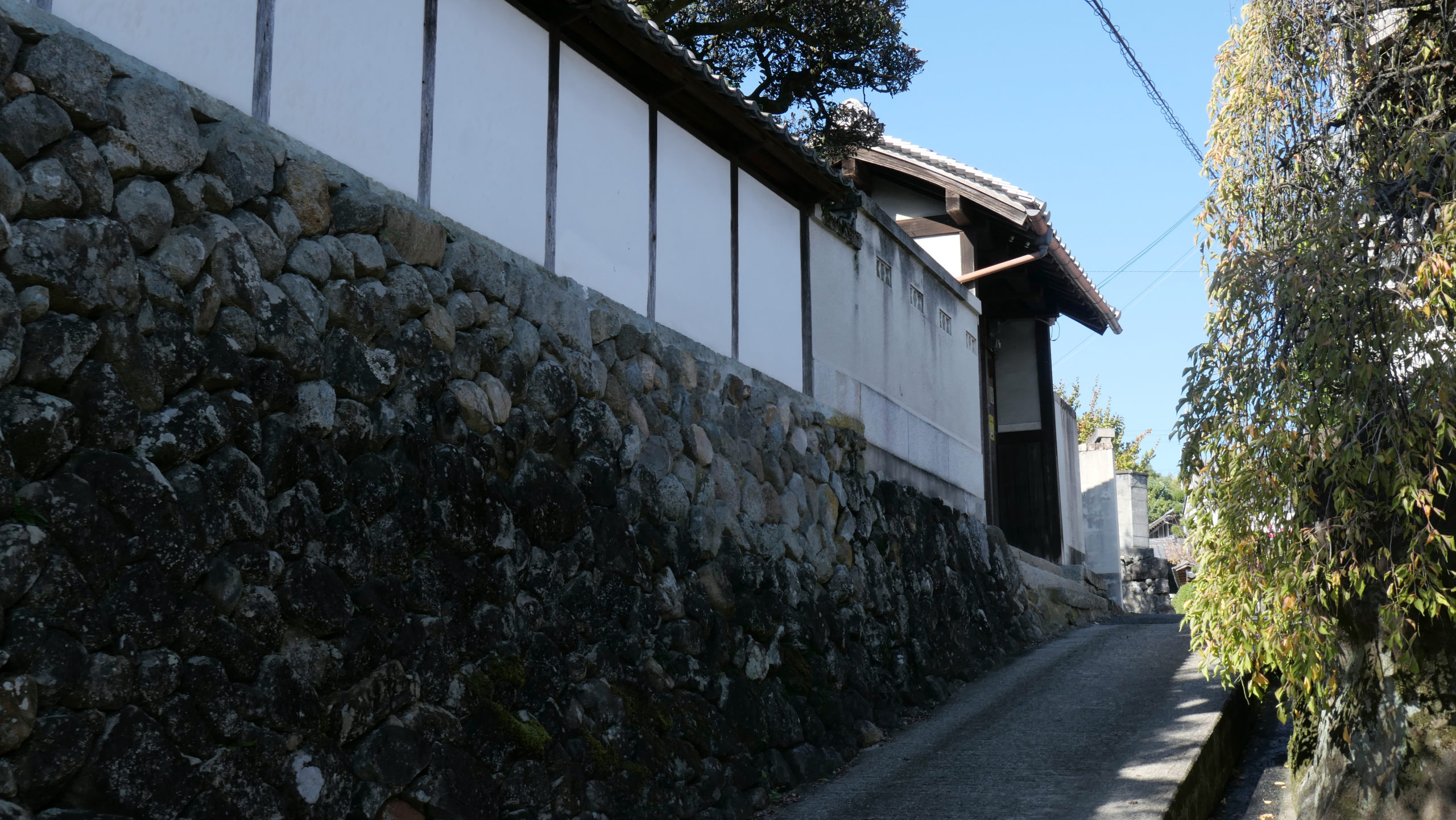 富田林市中佐備の庄を、少しだけぶらり Photograph 2022.10.25 出勤途中に気になっていた坂道のある細い路地。今日は思い切って寄ってみた。庄の中に入ると、そこは別次元。昔ながらの佇まいにタイムスリップ。遠くには金剛山が望め、「佐備」と「佐味」のつながりに想いを馳せることができる。