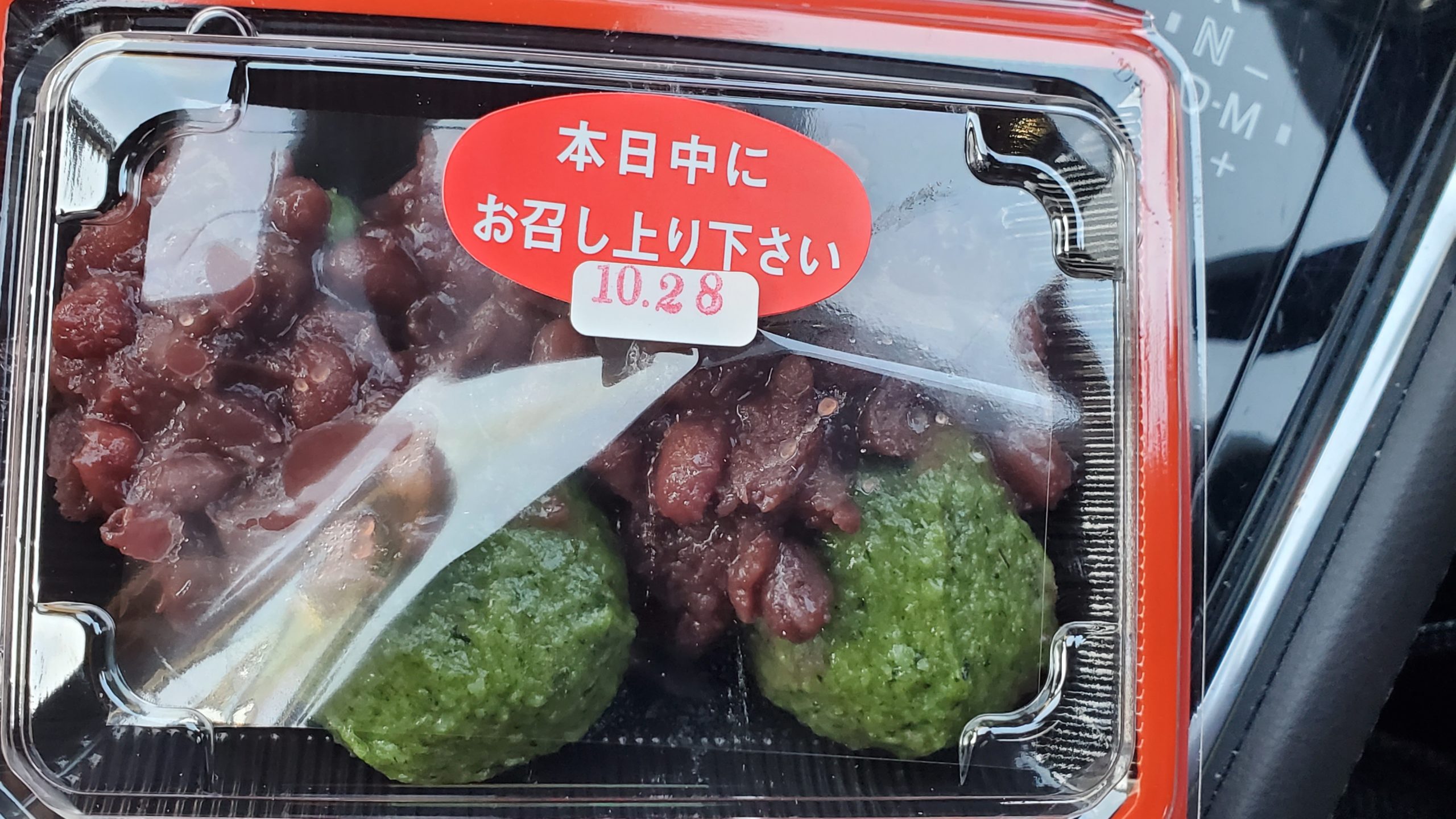 曽爾高原麓の「銭の花」の草餅 Eat 2022.10.31 大きなヨモギ餅に、カレーのルーのように餡が乗っていて、餅の食感、餡の甘さ加減ともに抜群。餅は普通のサイズよりかなり大きいのに、食が進むおいしさ!