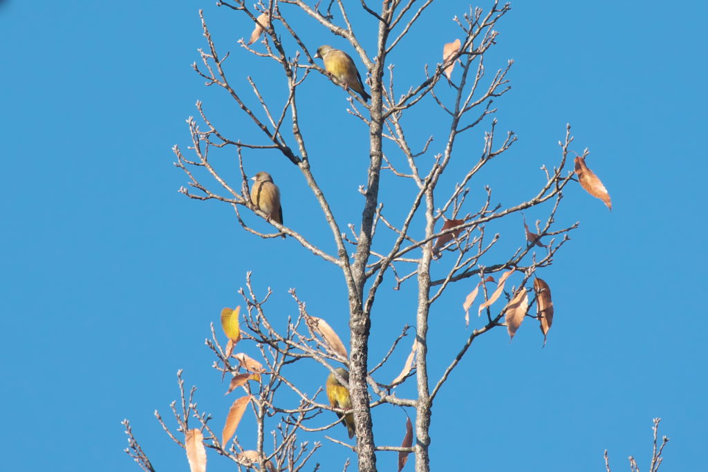 なんとかカワラヒワ、メジロ、エナガなどを撮影。