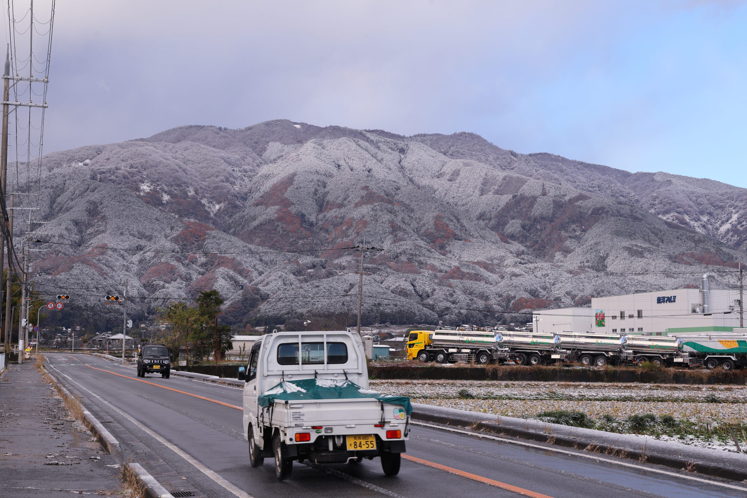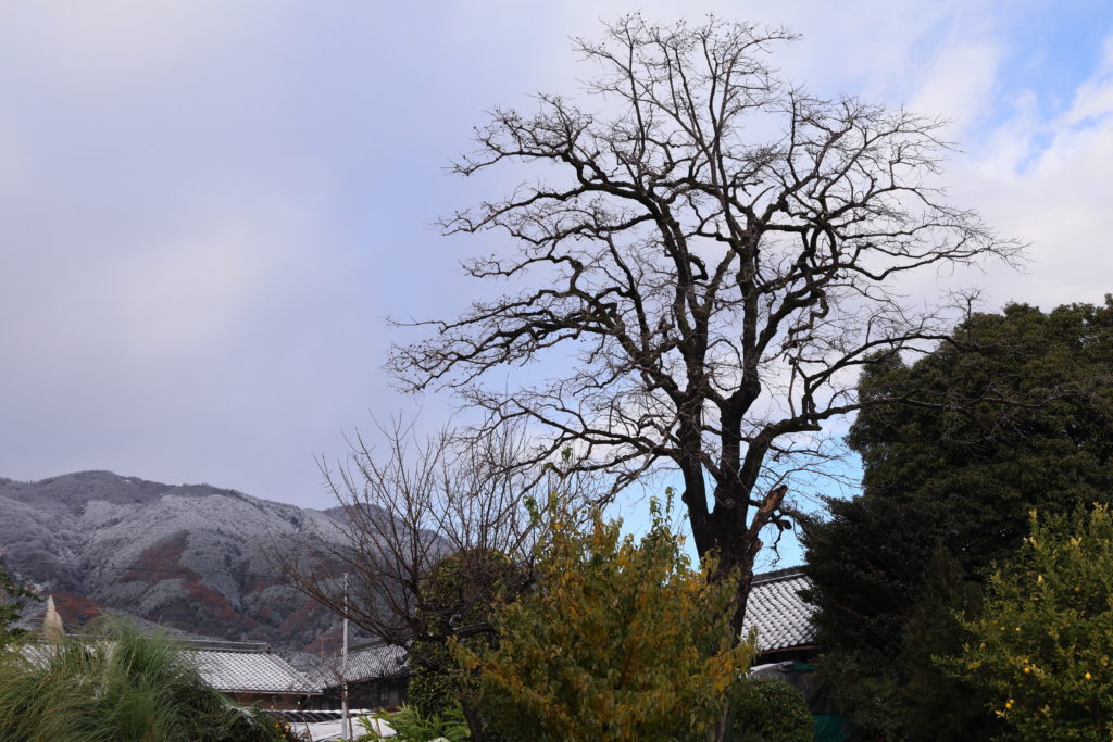 家の窓から遠くを見れば、音羽山が白くなっていた。