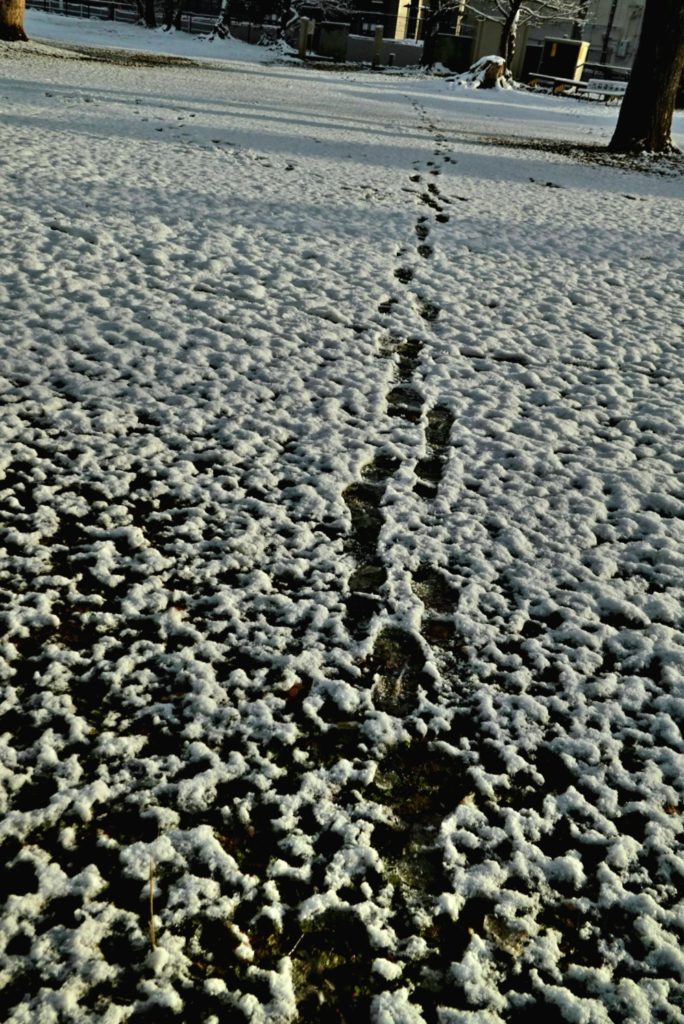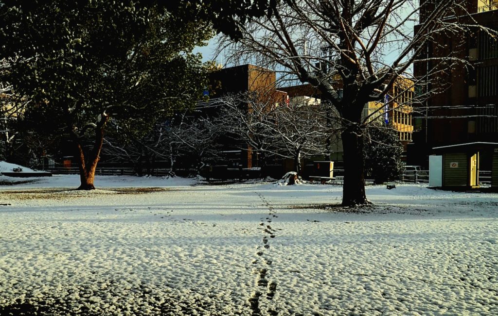 朝に起きて何気にカーテンを少し掴み窓の外を見て雪が積もっているのを見た時の感覚は、大阪で遅くまで飲んで帰り、山間部の駅で寝過ごしたのを悟るあの時の「はっ!」という「はっ!」に似ている。目をつむり睡眠と覚醒を繰り返してながら、「まだかな」「もしかして過ぎたかも」と、どこかで自問自答してたりする。しかし、飲んできると最後は感覚に頼る。「なにか静かやな」、「急に寒くなった、空気が違う」と、覚醒しきっていない脳みその中で、五感だけは一生懸命働かす。その結果、肌感覚で覚醒する前に「あーあ、寝過ごしたか…」と不思議に分かってしまう。その後、はッと目を開ければ、案の定真っ暗な駅に電車が止まろうとしているか、止まっているところか、次の駅に向けて出発しだしたところだ。つまり、僕の場合、大方、目を開ける前に寝過ごしたことが先にわかっている。朝の雪もそうだ。変な静けさ、冷気、いつもより数が少ない車のしかもジュクジュクな音。