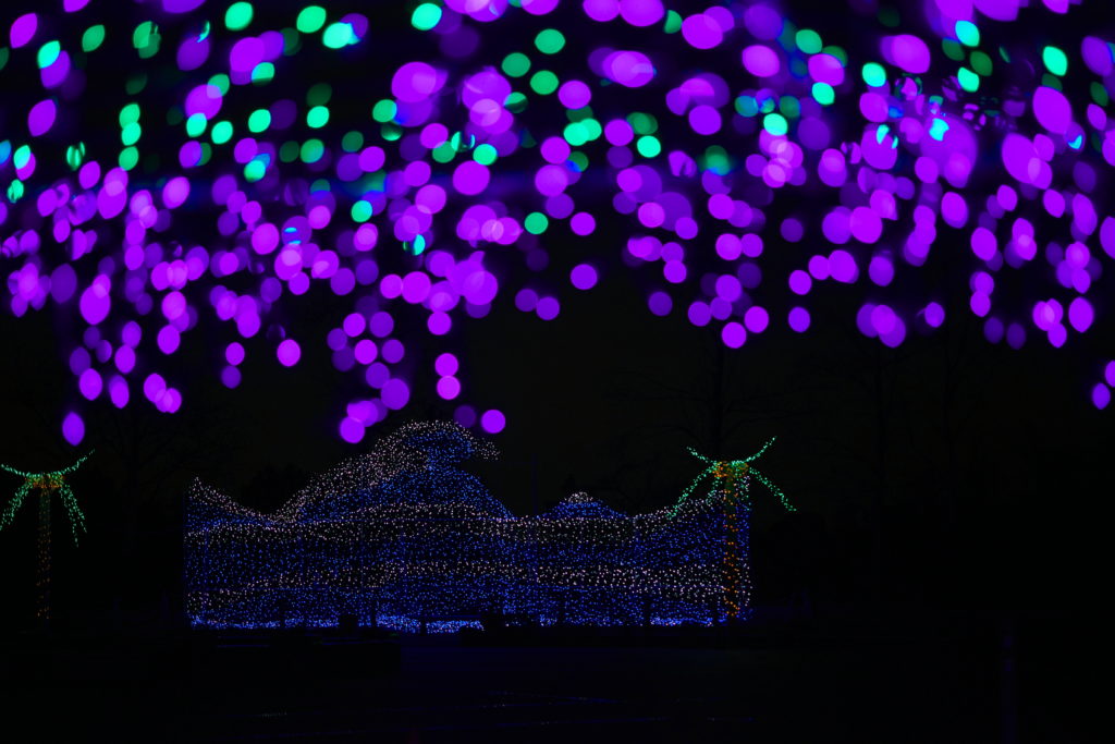 下の写真は絞りに絞って撮影。光の拡散が抑えられ、光源がしっかり見えるほど。