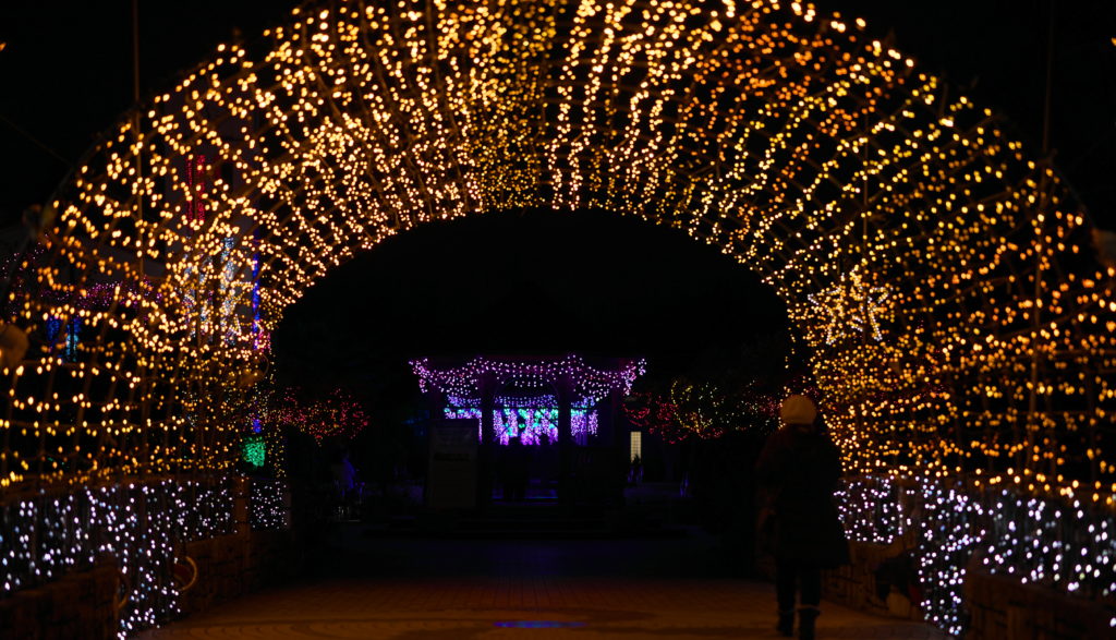 すぐに用が済んだので、寺ケ池公園のイルミネーションを見に寄った。
