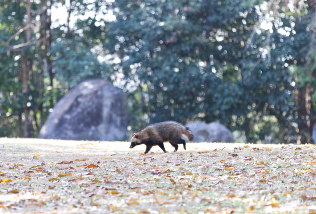 この後タヌキが道をゆっくりと横断していった。オスがまず横断し、次にメス(?)が続いた。メスは何かに攻撃されむしり取られたのか、頭から尻尾にかけて毛がほとんどなかった。おそらくこの冬は寒さで越せないかもしれない。写真に数枚収めたが、この姿は掲載しないでおこう。