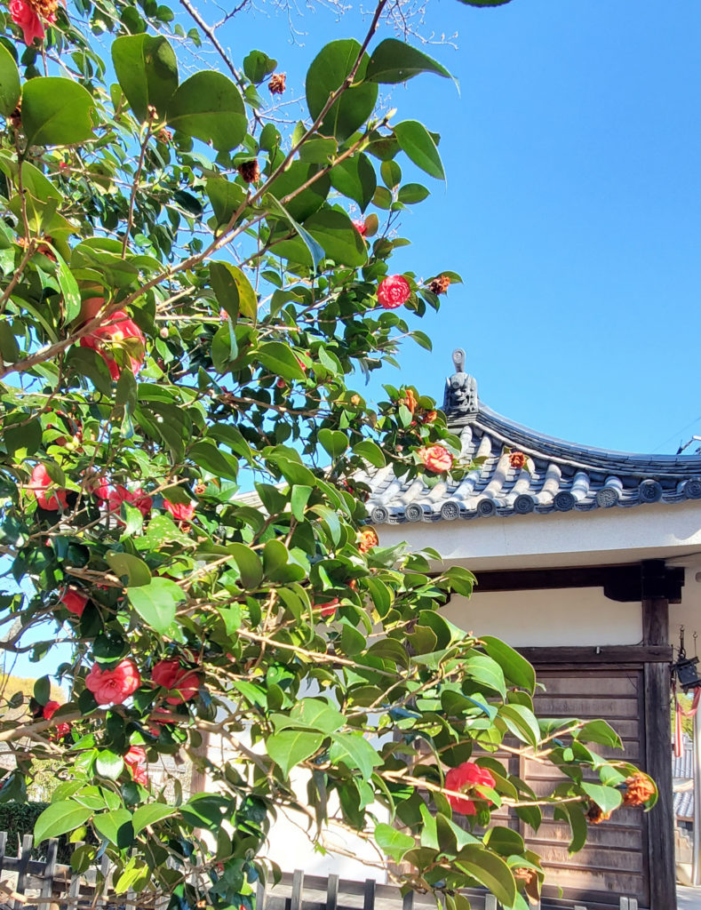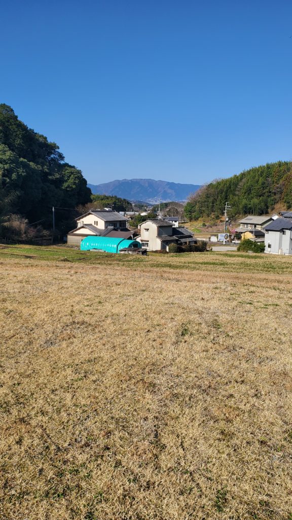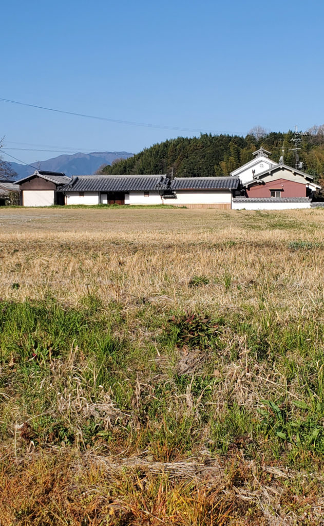 広々としたところに、古い建物、山の緑、野の花、鳥の声、遠景・・・。