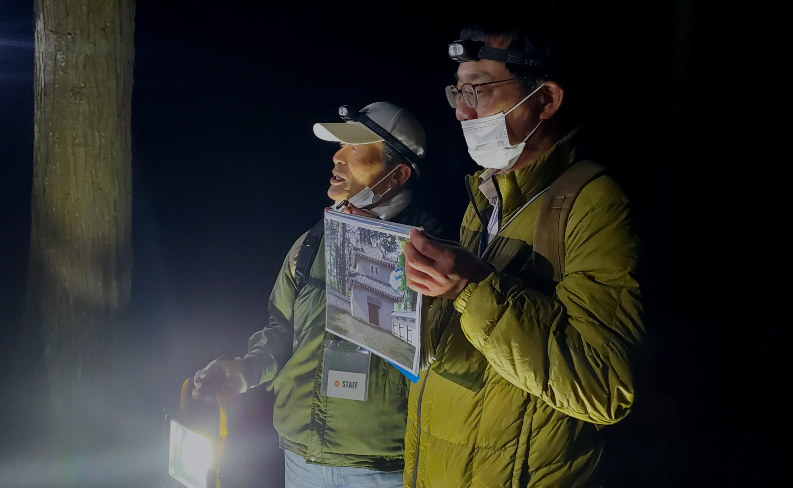 竹馬の友も参加してくれ、普段体験できないワクワク感を持ちながら、ナビゲーターさんの楽しい話、夜景観賞、石垣のライトアップ、そして写真撮影を楽しんだ。