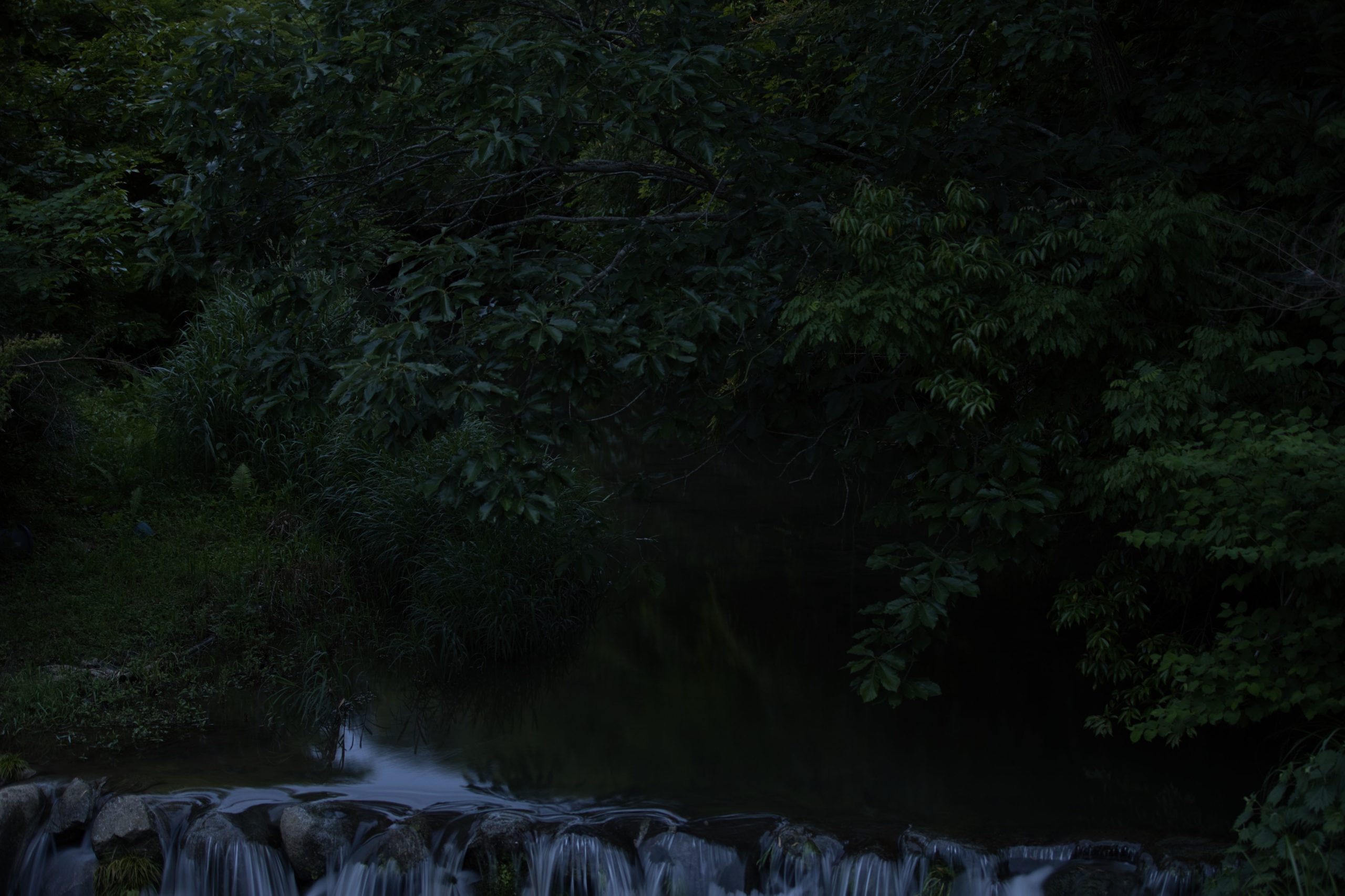 蛍を撮る場合は、まず、うす暗くなった時点で写真を数枚撮っておく。