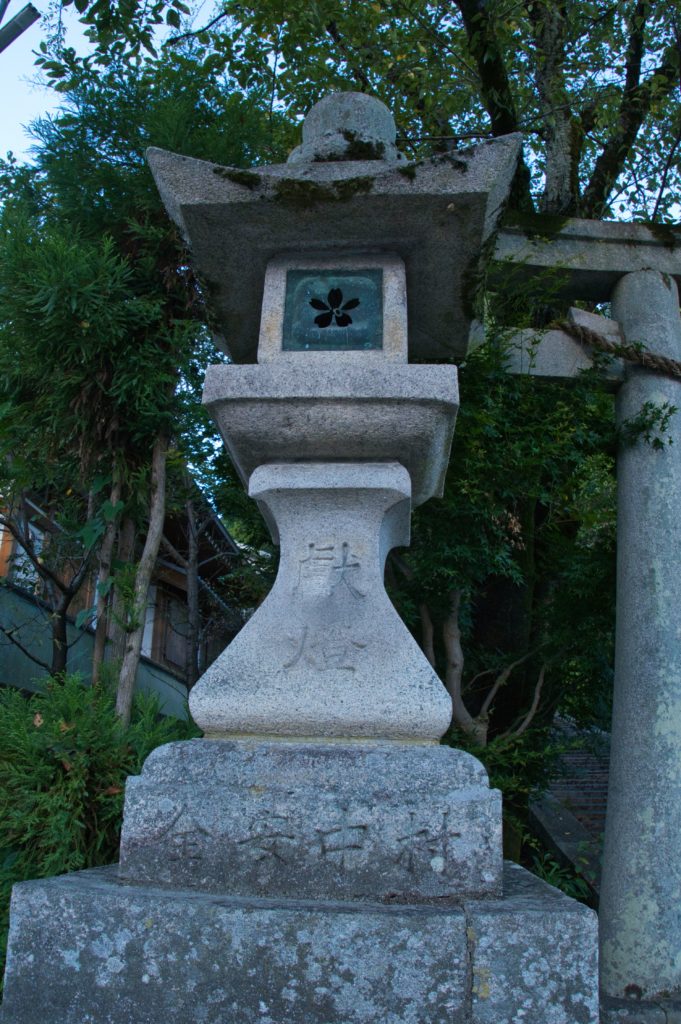 鳥居の脇にある灯篭にある印は桜井市章そのもの。