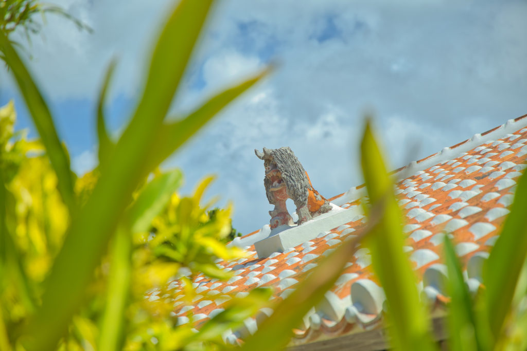 竹富の赤瓦屋根の民家群も、その上に乗るシーサーも。