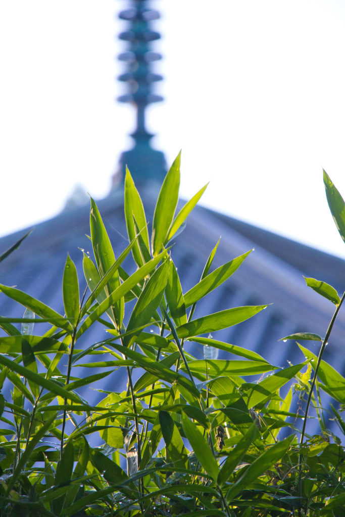 浮見堂の前の笹の葉についた水滴を強調したかったが、水滴が小さすぎてなかなかうまくいかず。