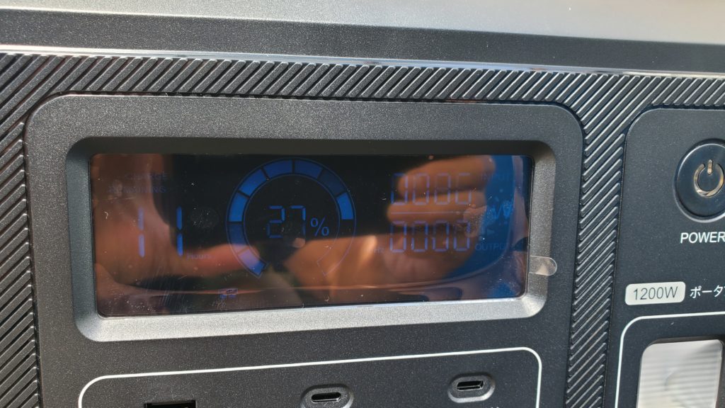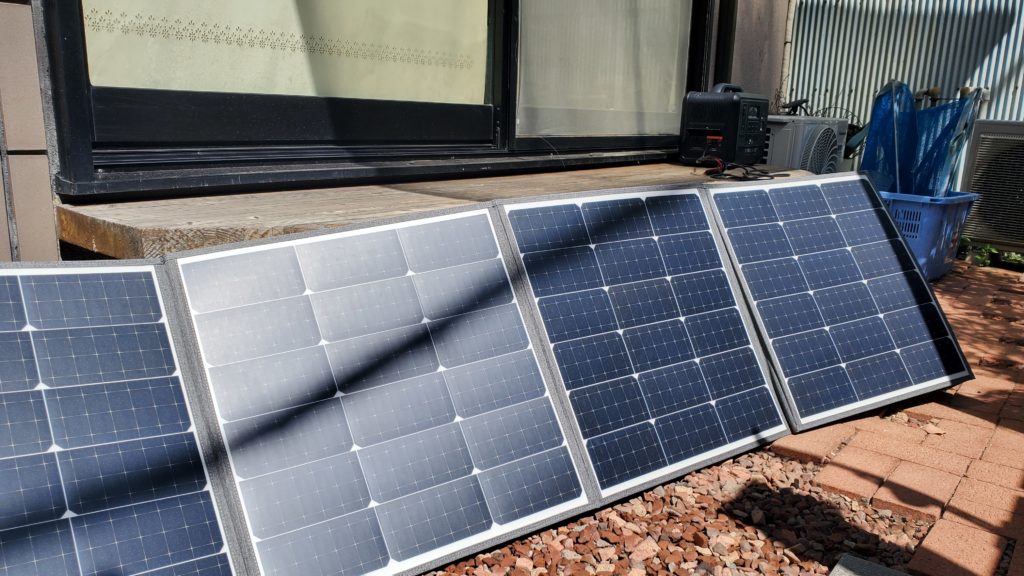 家に帰ってから、車中泊のために購入したポータブル電源を、ソーラーパネルに接続して充電してみた。供給電力がなかなか上がらないのは、パネルの角度の問題だろうか・・・。