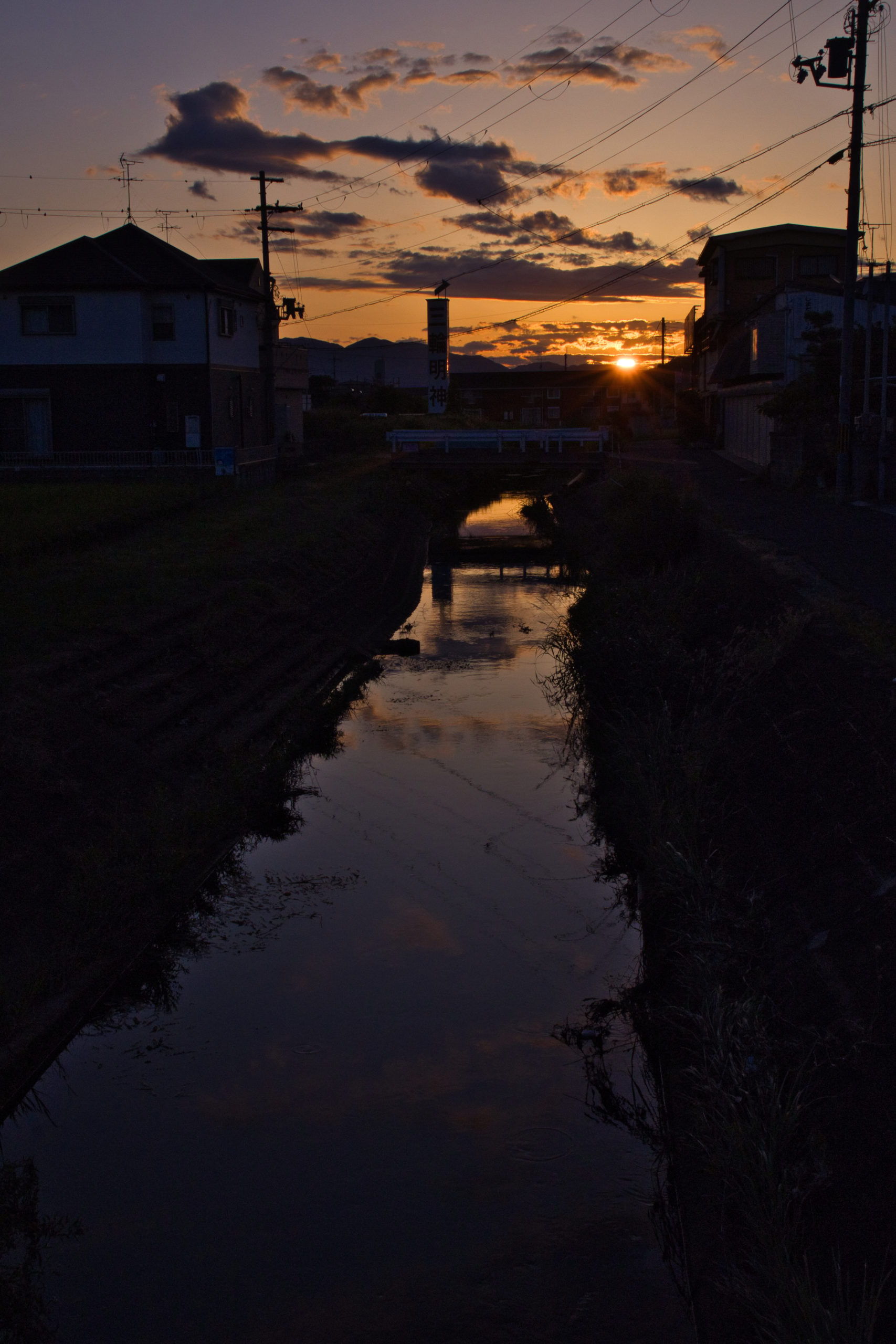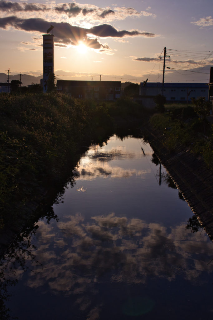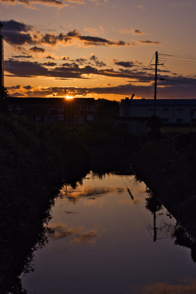 なんでもない風景でも、夕焼けを背景にすれば?