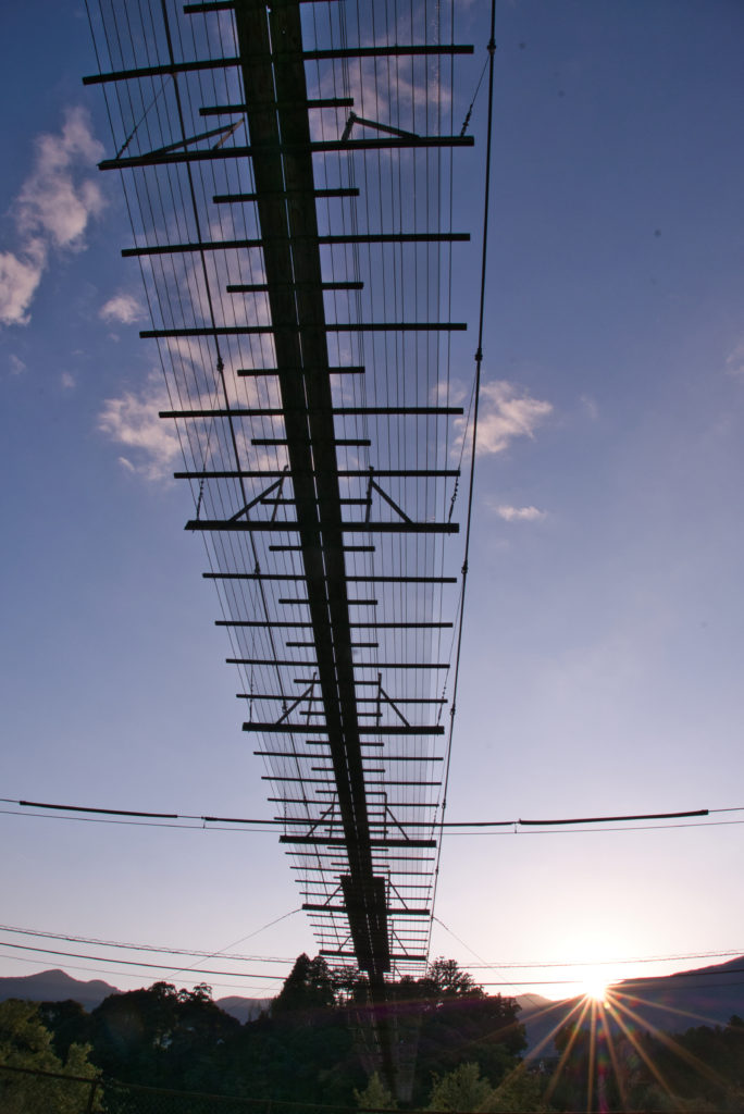 全長220.4m・高さ10.4mの木造、定員10名の吊り橋。