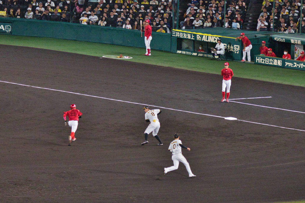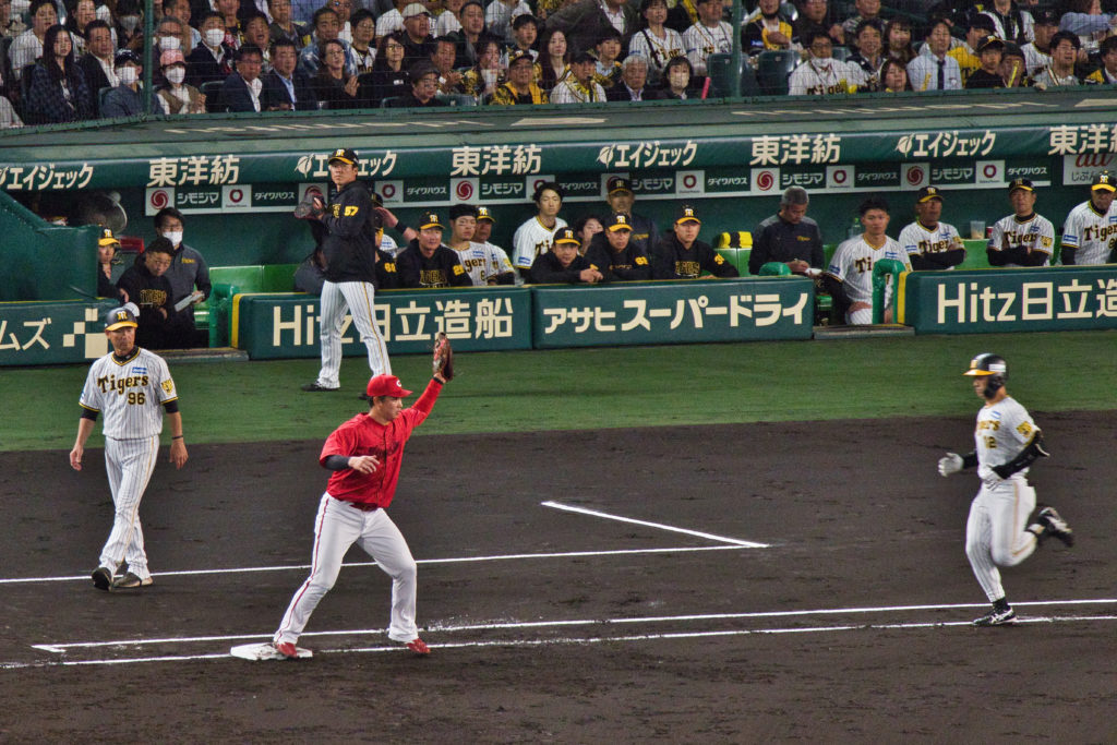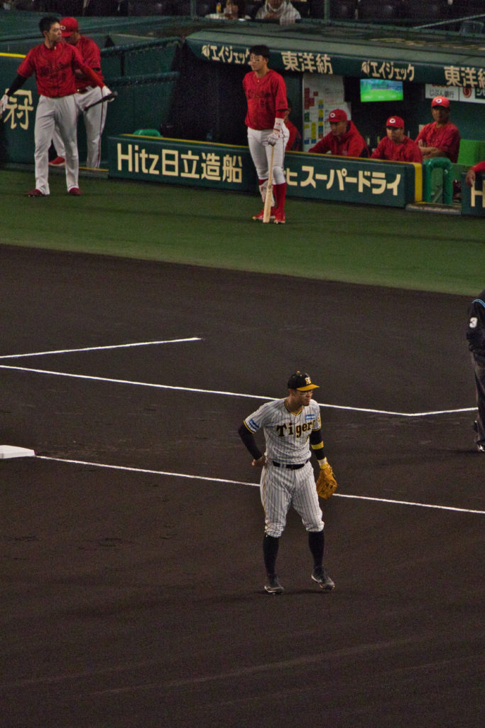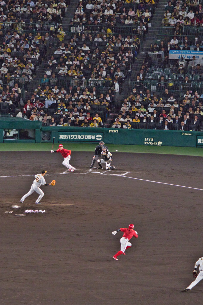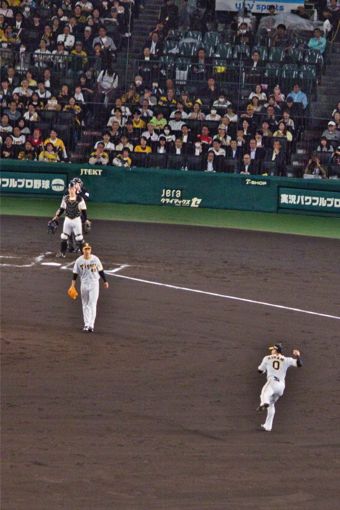 それにしても甲子園はバックスクリーン近くからみるとゴルフ場のように広く、緑がきれいで、気持ちがいい。