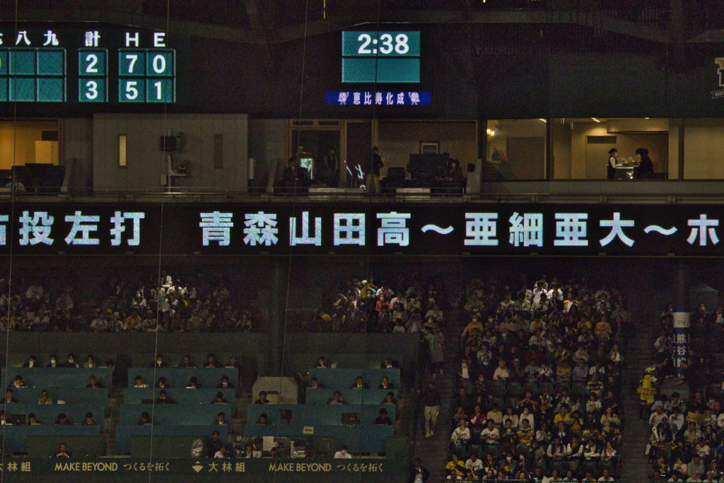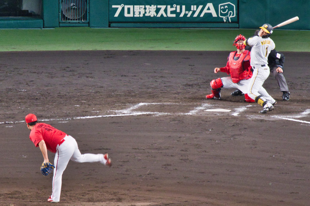 照明があるとはいえ夜は夜なので、F5.8は不安でしかなかったが、球場の照明は予想外に強力だった。