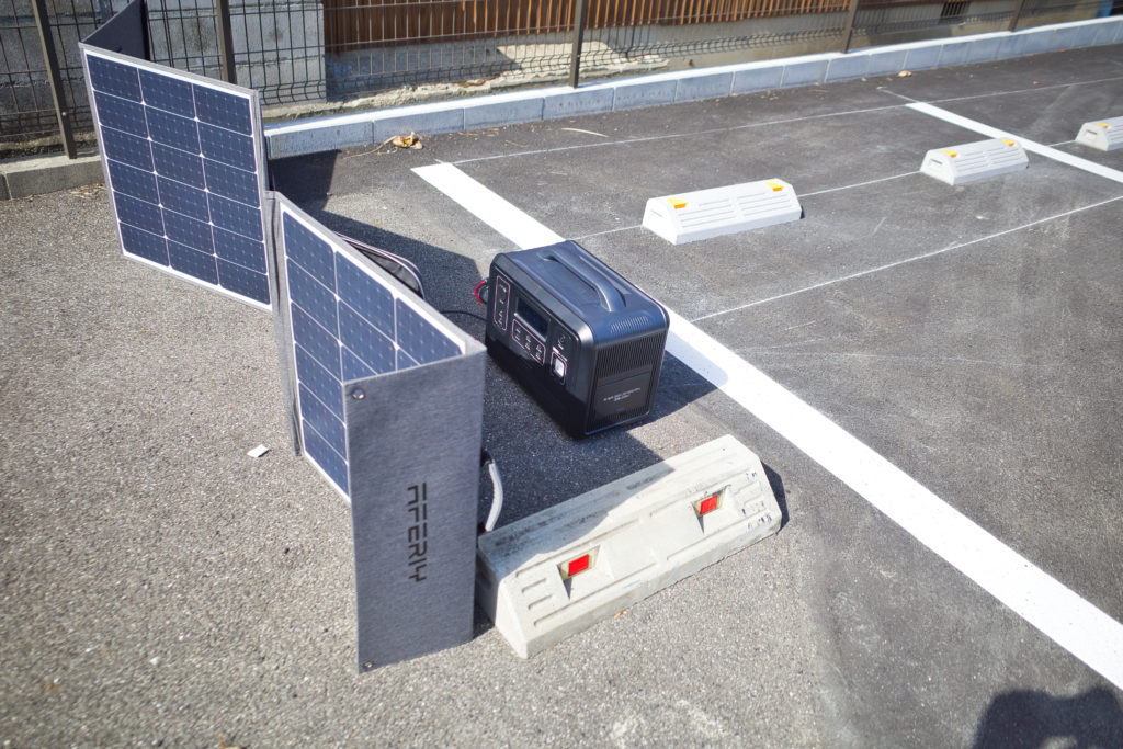 洗車の合間にポータブル電源にソーラーから電気を充電してみた。