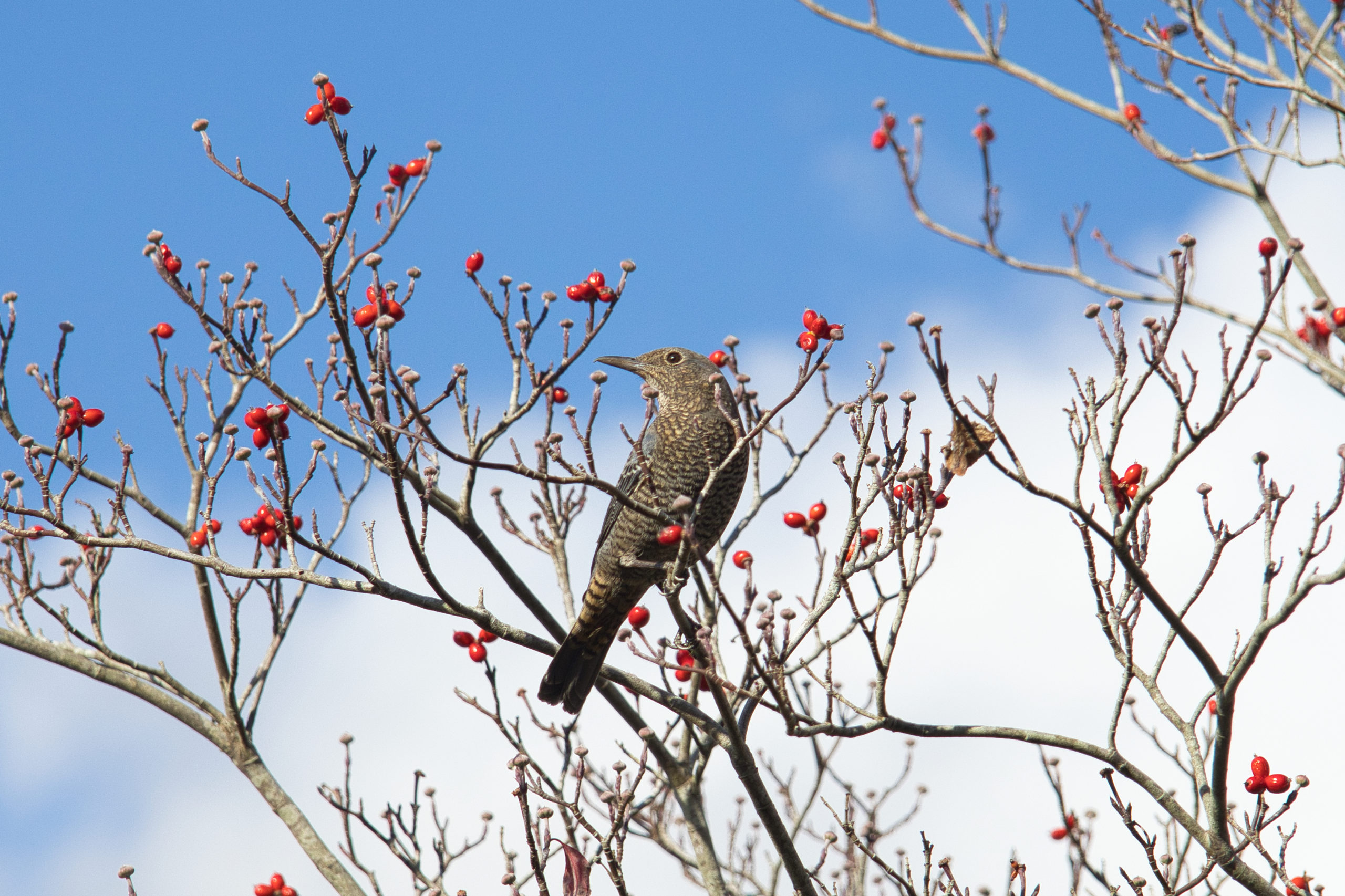 動きものに被写界深度はダブる Bird 2023.12.01 イソヒヨドリ。被写界深度は被写体が動くので無理だが、一応やってみる。12枚の合成。結果は当然ダブって見えた。 合成写真以外は連写したのと同様。でも少しずつピントがずれているはずだ。