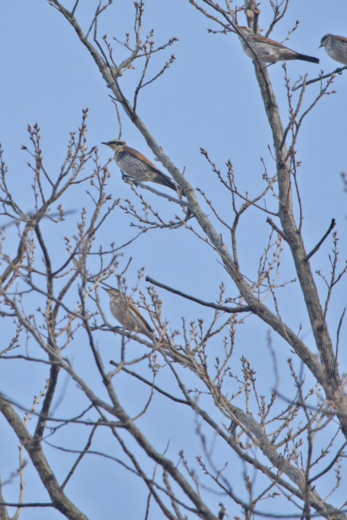 風が強いと鳥も少ない(?) Bird 2023.12.07 今朝は風が強かった。強い風だからといって、この時期にしては生温かな風。風そのものの音と、風による葉が擦れ合う音で、鳥の鳴き声も聞こえない。そんな中、ツグミの群れが飛んできて、目の前の大きな木に止まってくれた。