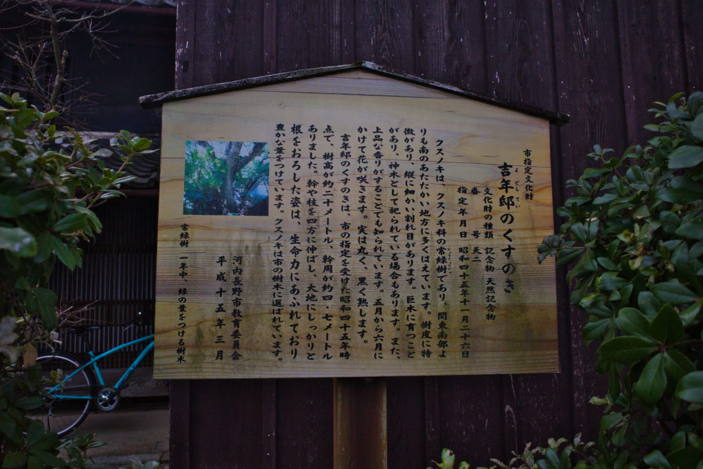 その中庭にはひときわ大きな楠があって、河内長野市の天然記念物に指定されている。