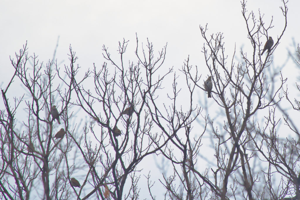 モズ、ツグミの群れ、ヒヨドリと撮影。