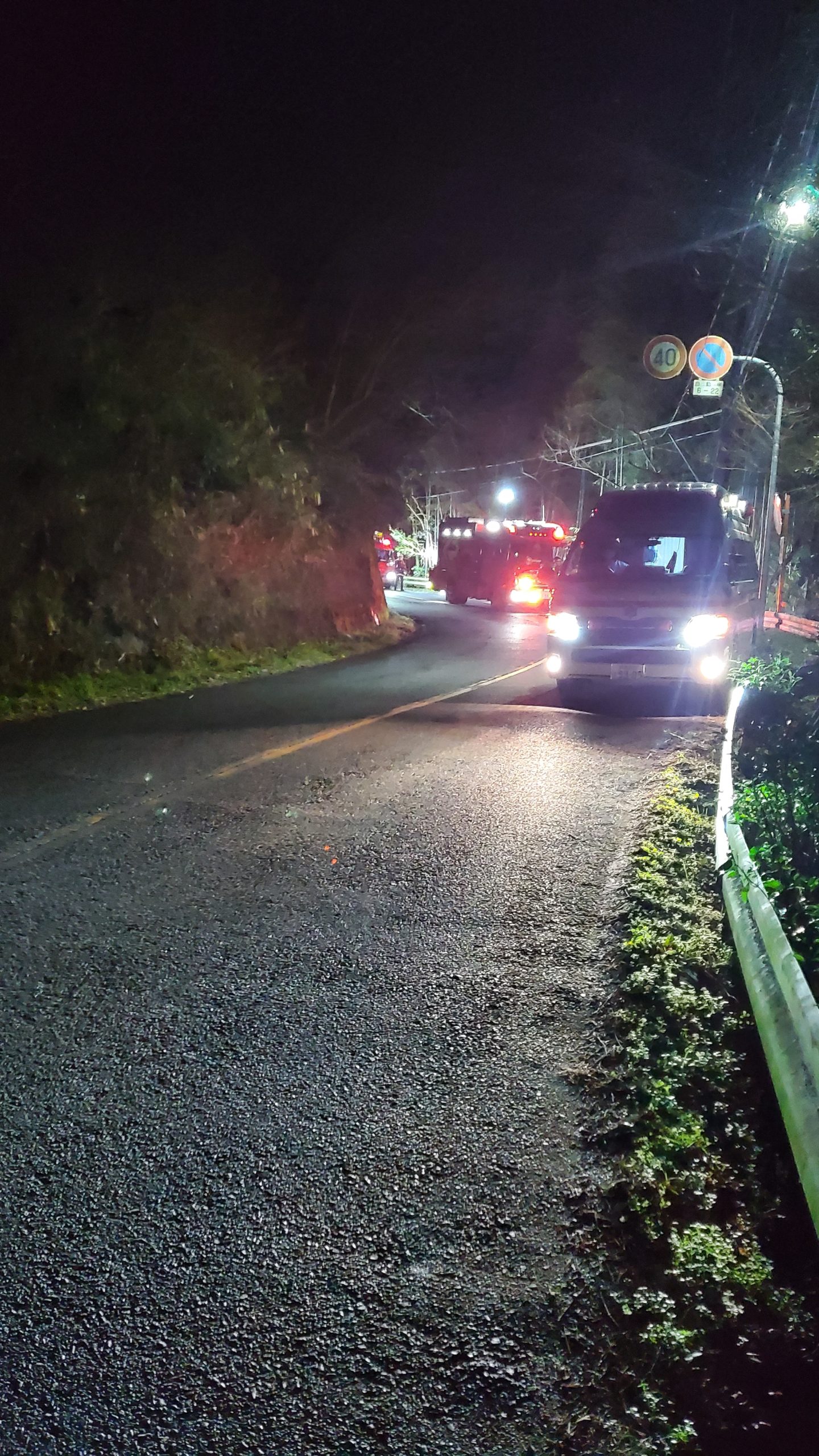 そろそろ退勤やなと思っていた時に施設利用者さんがエスケープ。気付いたので、声をかけながら追っていったが、暗闇の中を谷の方にいきなりダイブ。