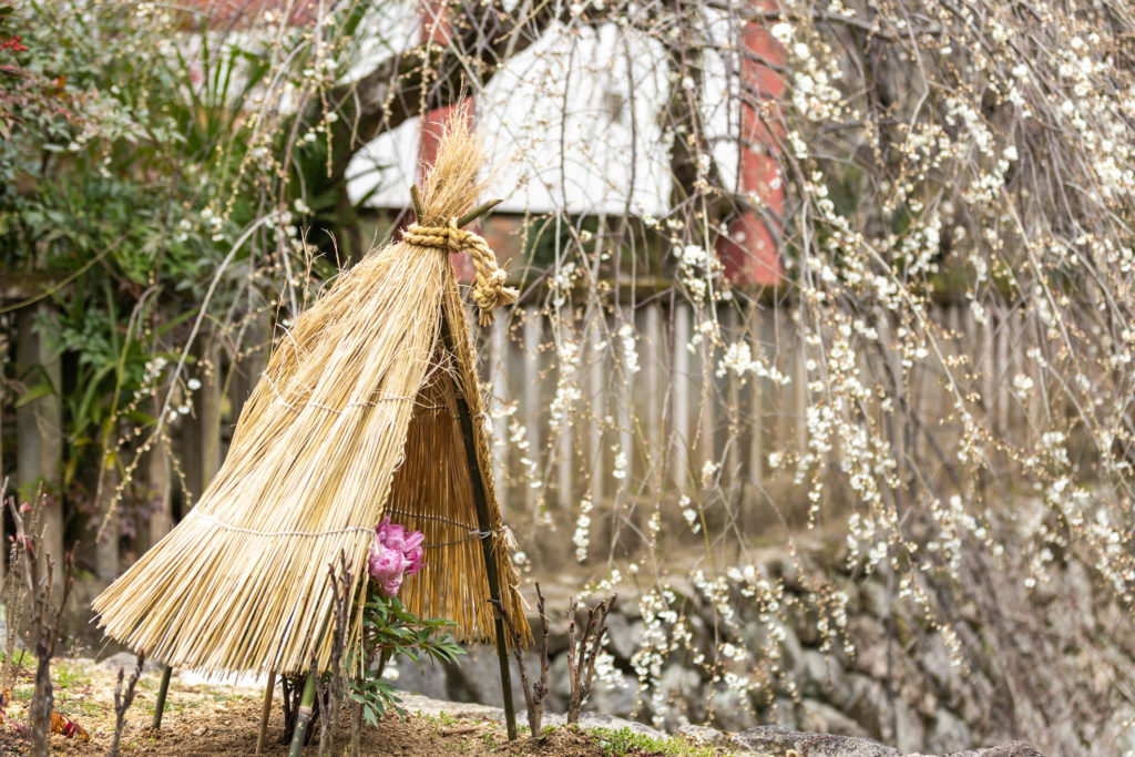 長谷寺の境内を入ると、初めに寒牡丹が目にとまる。