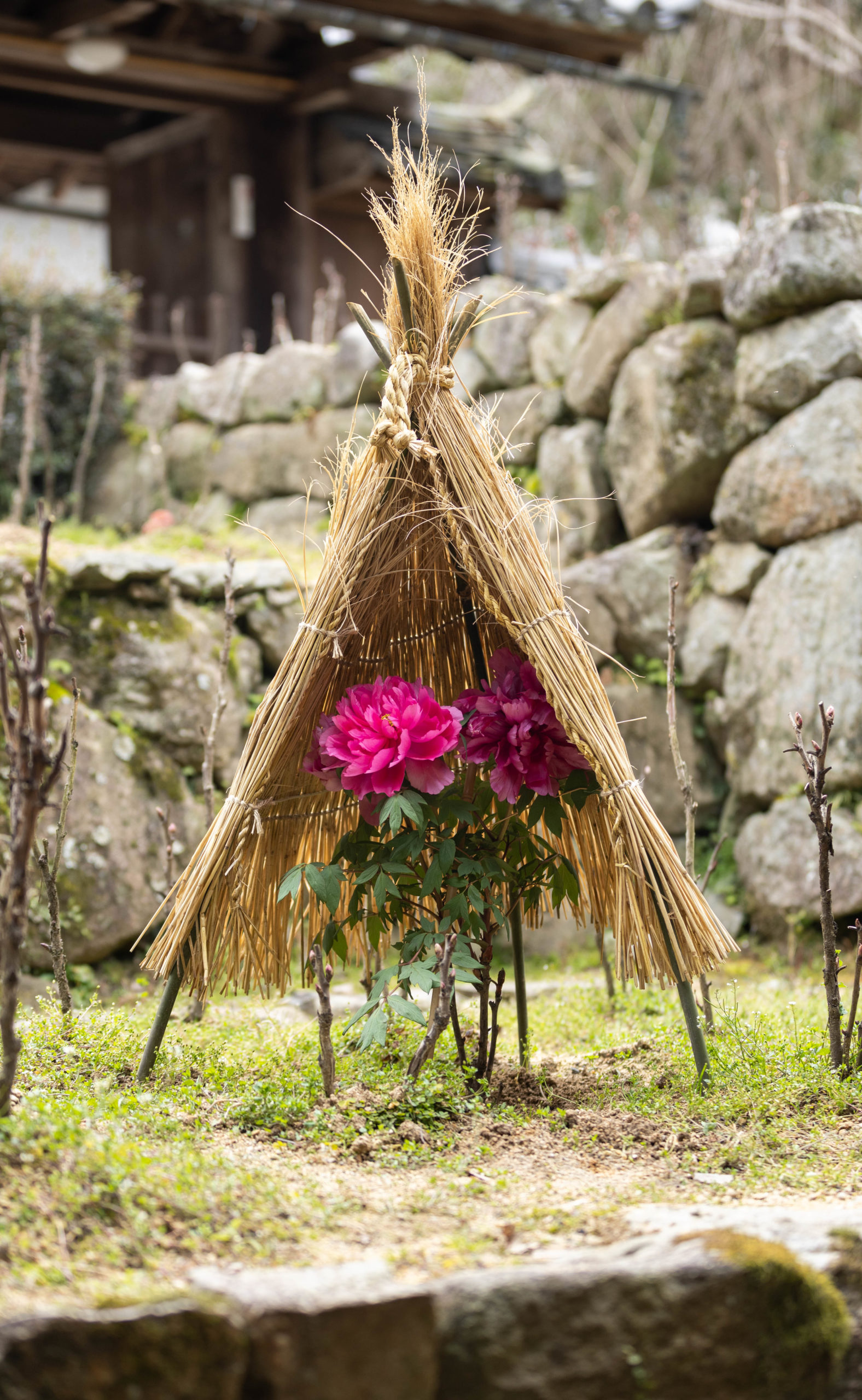 長谷寺の境内を入ると、初めに寒牡丹が目にとまる。
