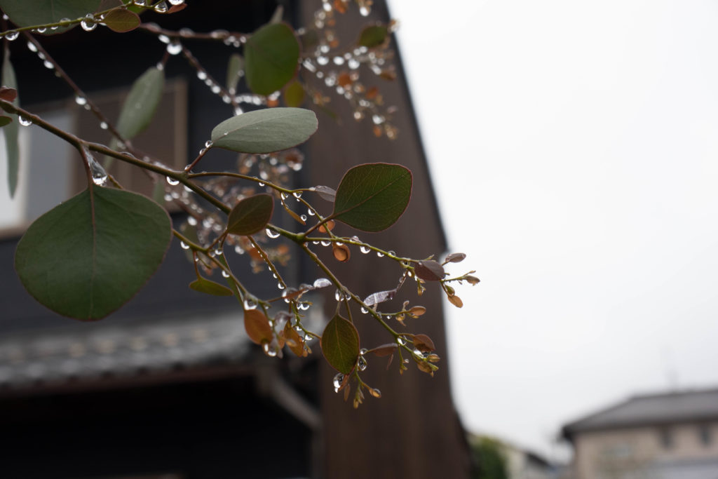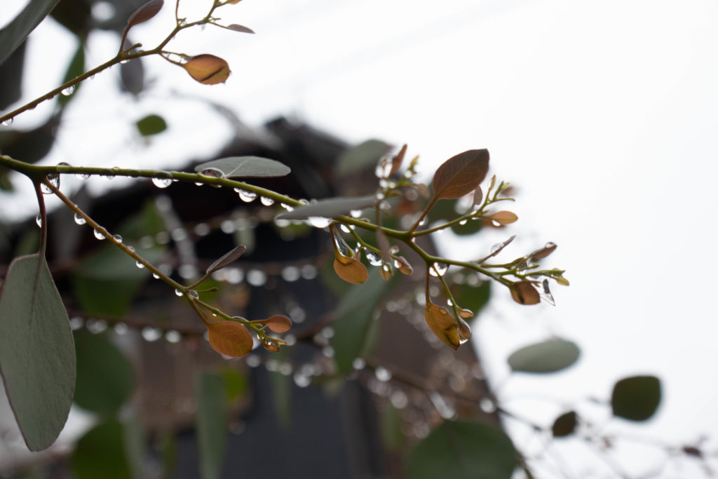 ユーカリは水をよくはじくので、雨の水滴がきれい。