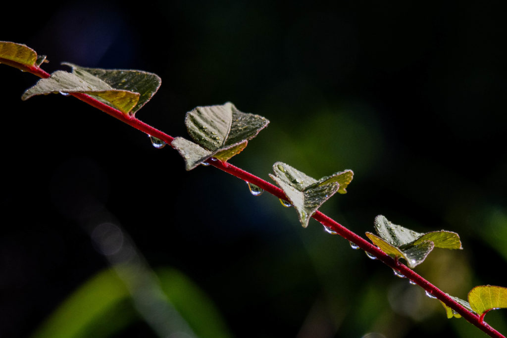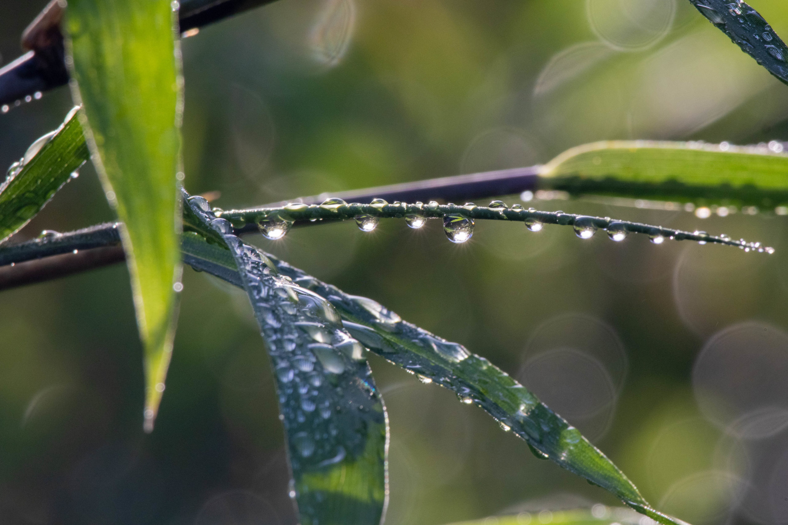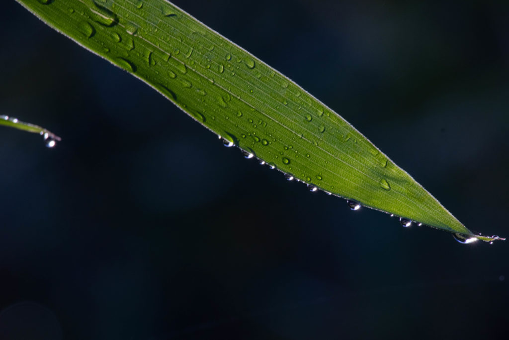 鳥もあまり見かけないので、草花に付着した水滴を撮影。
