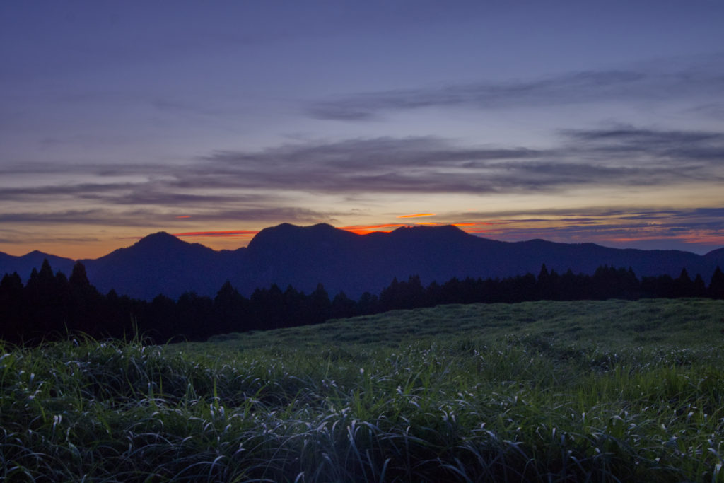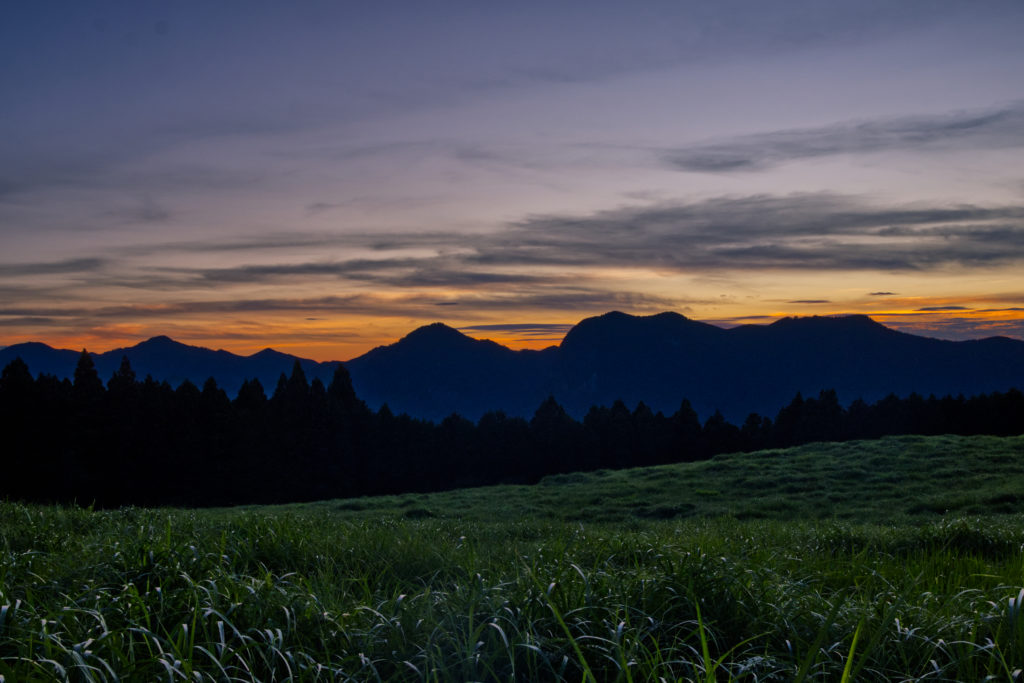 曽爾高原に到着すると、すでに太陽が向かいの山に隠れる寸前で、夕景が始まっていた。