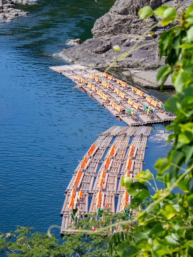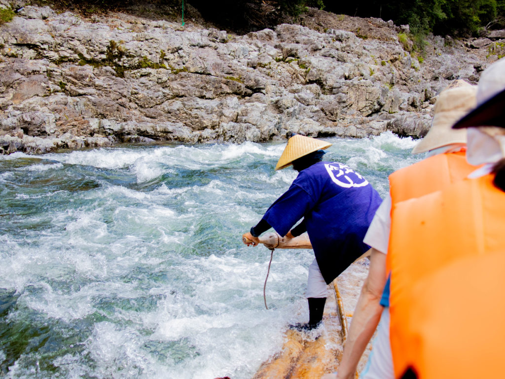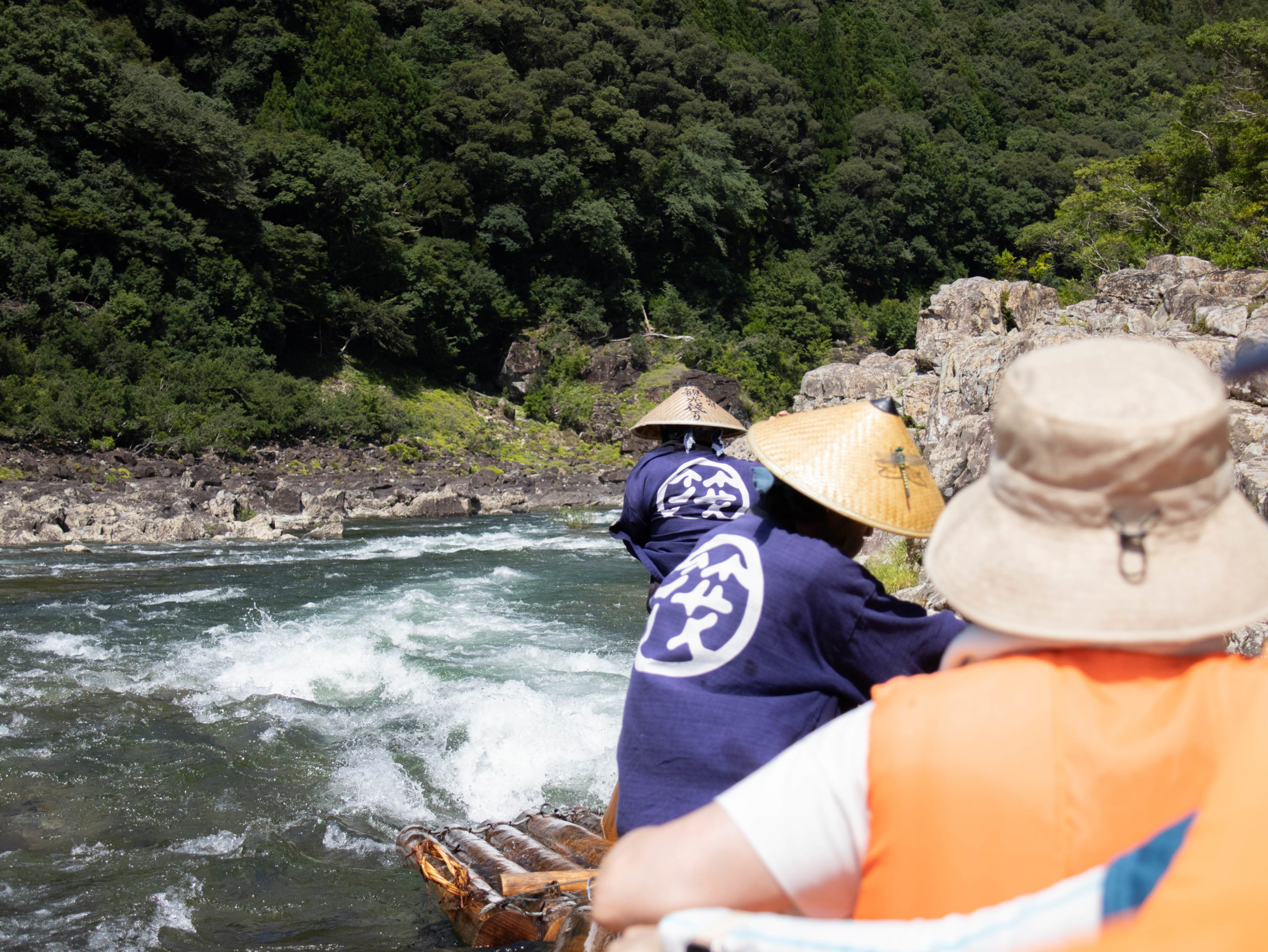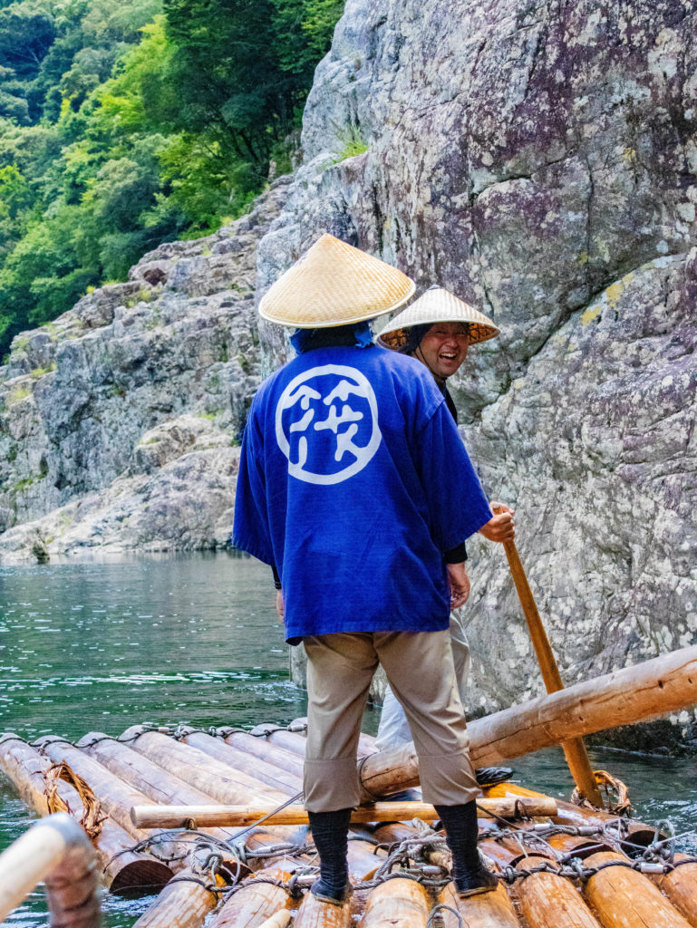 林業、農家など様々だが、この時季は屈強な男たちが集まり、体を張って筏を操る。