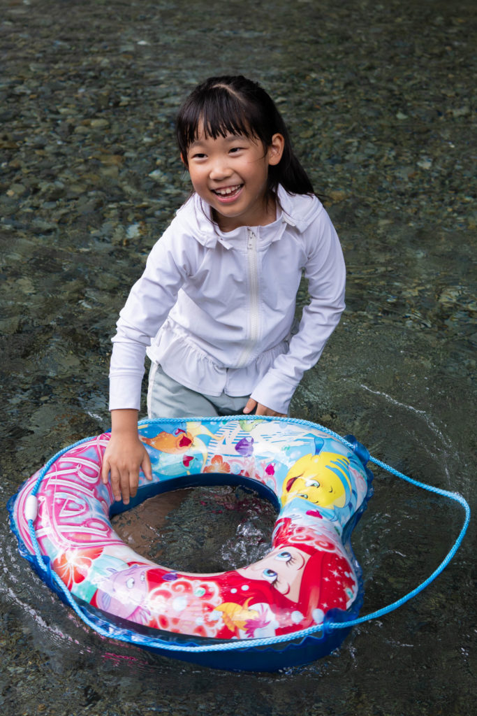 遠雷が聞こえる中、東吉野村「やはた温泉」のすぐそばを流れる川で、ビック娘とミドル娘の子どもたちと川遊び。