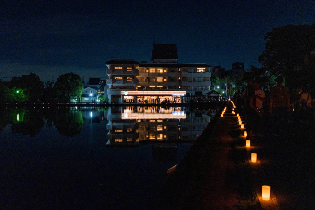 私は微妙で、この燈花会の雰囲気からして、もう少し照明を「間引き」しても良いような気がした。