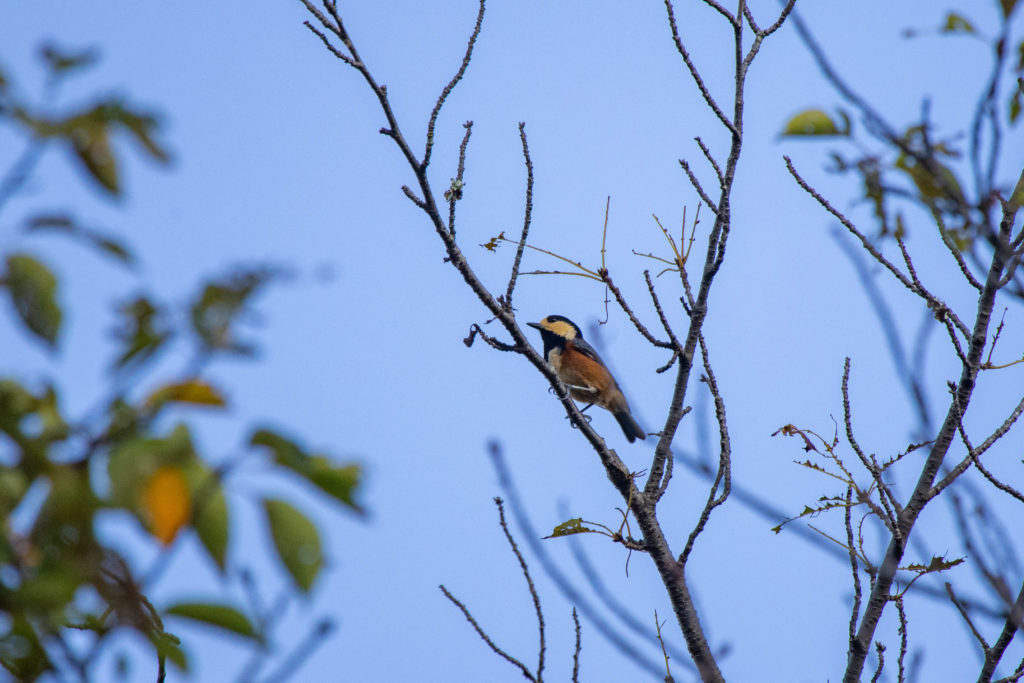 ヤマガラの鳴き声はそこかしこで聞こえるが、なかなか姿をとらえられなかった。今日は写真に納まってくれた。