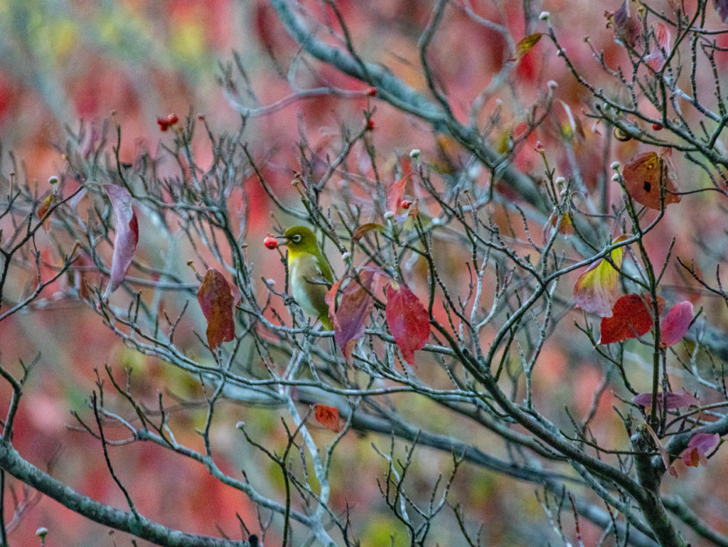 宿直明けに野鳥撮影 Birdメジロ 2024.11.03 職場の窓から、宿直明けの朝に。赤い実を目当てに鳥たちが集まってくる。窓を開けっぱなしにしては寒いが、鳥撮影の方を優先。 ジョウビタキ メジロ 柵にも メジロ イソヒヨドリ