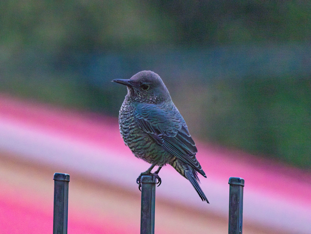 段々と空が明るくなって、いつものようにイソヒヨドリが背後の柵に早々に止まっていた。
