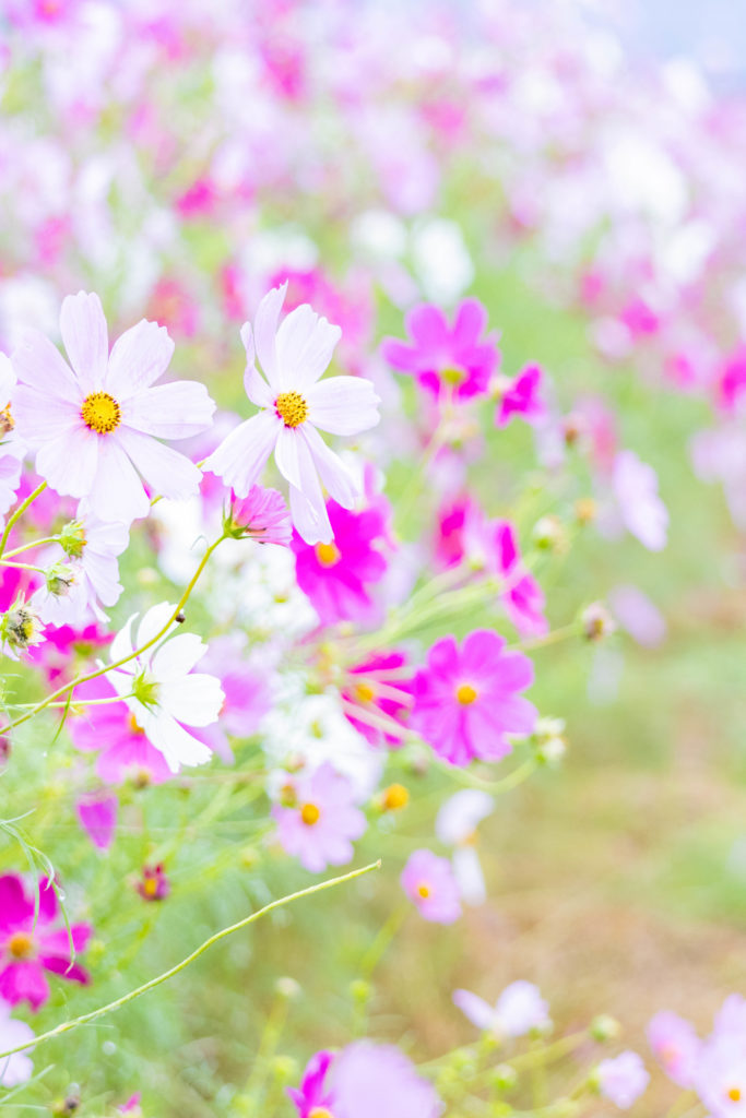 今回のコスモスの撮影では、露出を高めに設定、女性らしいやさしい雰囲気を心がけてみた。